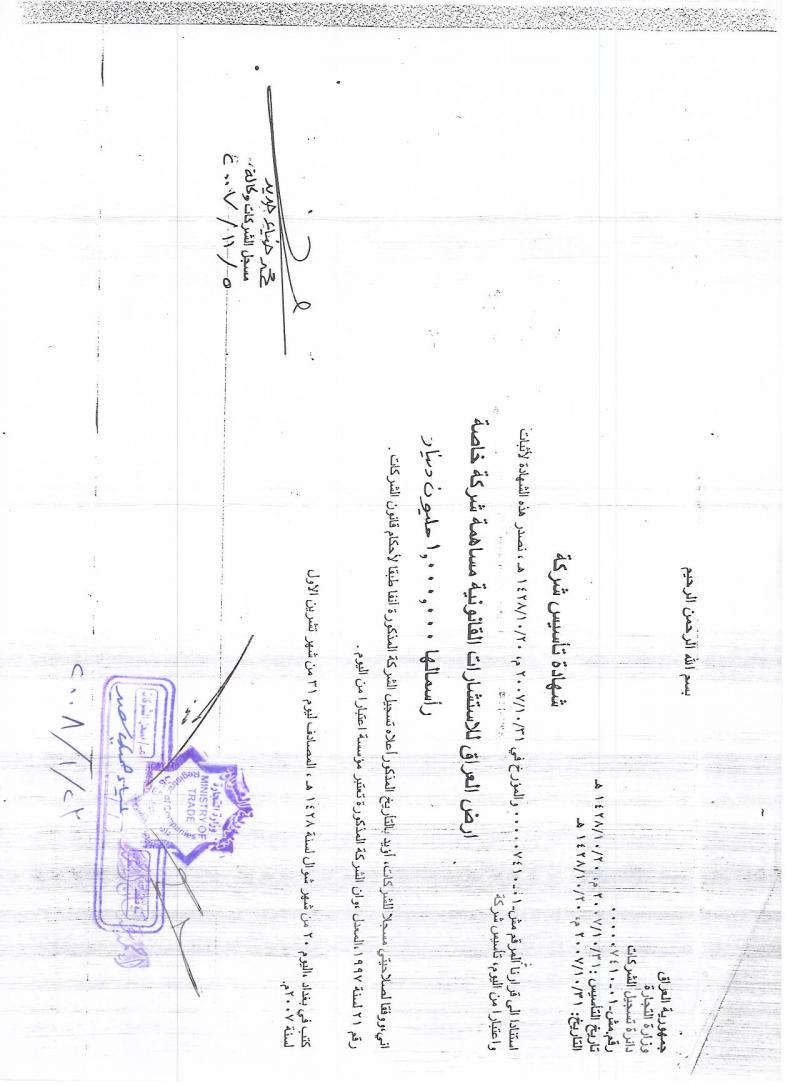 According to our decision no. MS-01-7410 dated 31 Oct 2007; we issue this certificate to prove the establishment of: